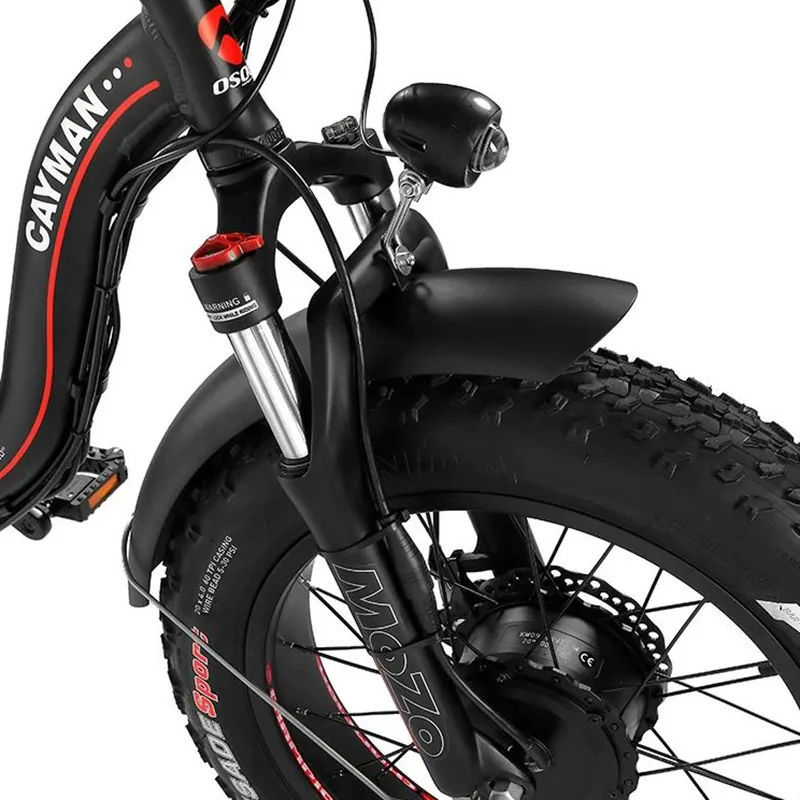 Широкі шини 20×4″ Fat Tire гарантують високу стабільність, комфорт і відмінну прохідність на асфальті, ґрунті, піску або снігу.