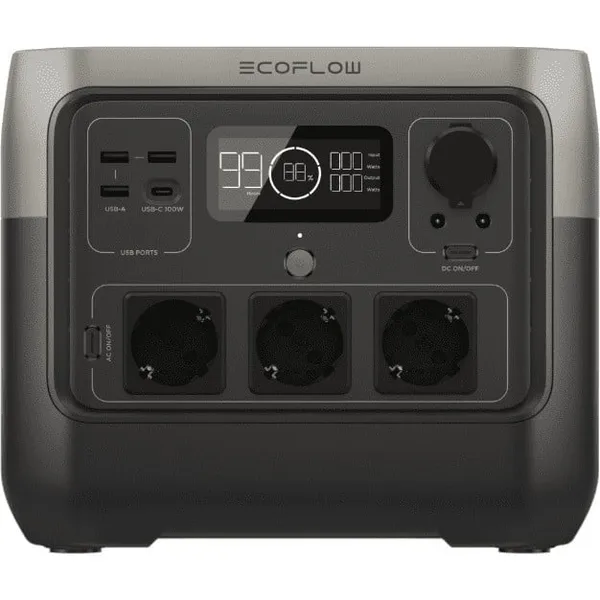 EcoFlow River 2 Pro — потужна портативна зарядна станція з акумулятором 768Wh та номінальною потужністю 800W. Підходить для резервного живлення під час відключень електроенергії, зарядки ноутбуків, побутової техніки та електроніки. Оснащена сучасною батареєю LiFePO4 та підтримує швидку зарядку EcoFlow X-Stream і підключення сонячних панелей.