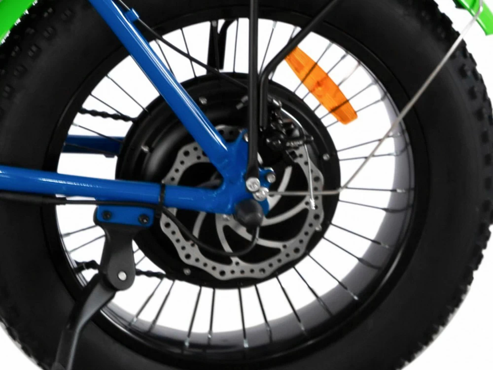 Великі колеса 26×4″ Fat Tire забезпечують максимальну прохідність, стабільність та комфорт навіть на складному бездоріжжі.