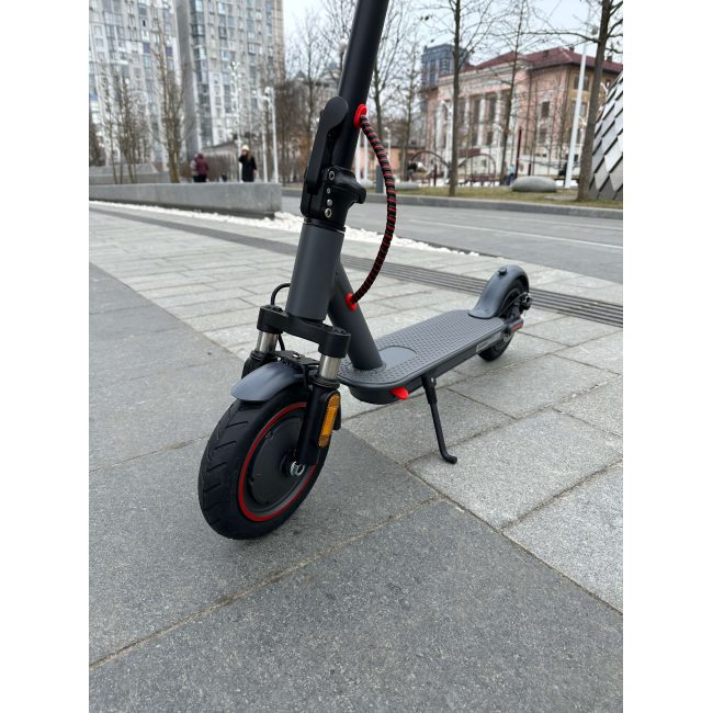 Розроблений для більш плавної їзди, M365 PRO MAX оснащений переднім амортизатором, що гарантує, що кожна поїздка буде не просто поїздкою на роботу, а комфортною та захоплюючою. Незалежно від того, чи пересуваєтеся ви міськими вулицями, чи долаєте нерівності місцевості, вдосконалена технологія амортизації додає точності та комфорту вашій їзді.