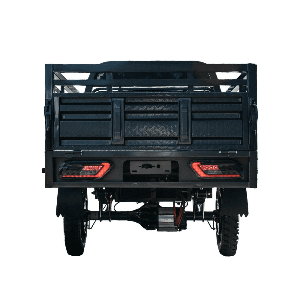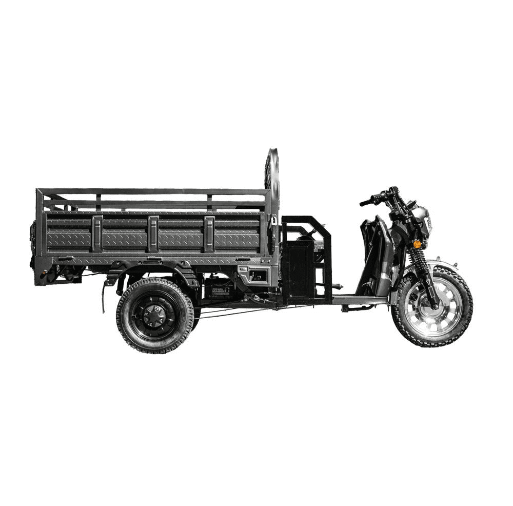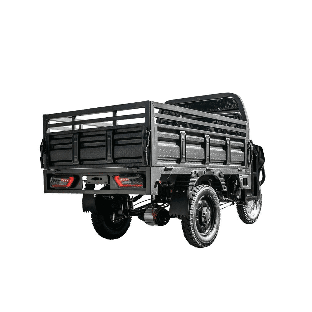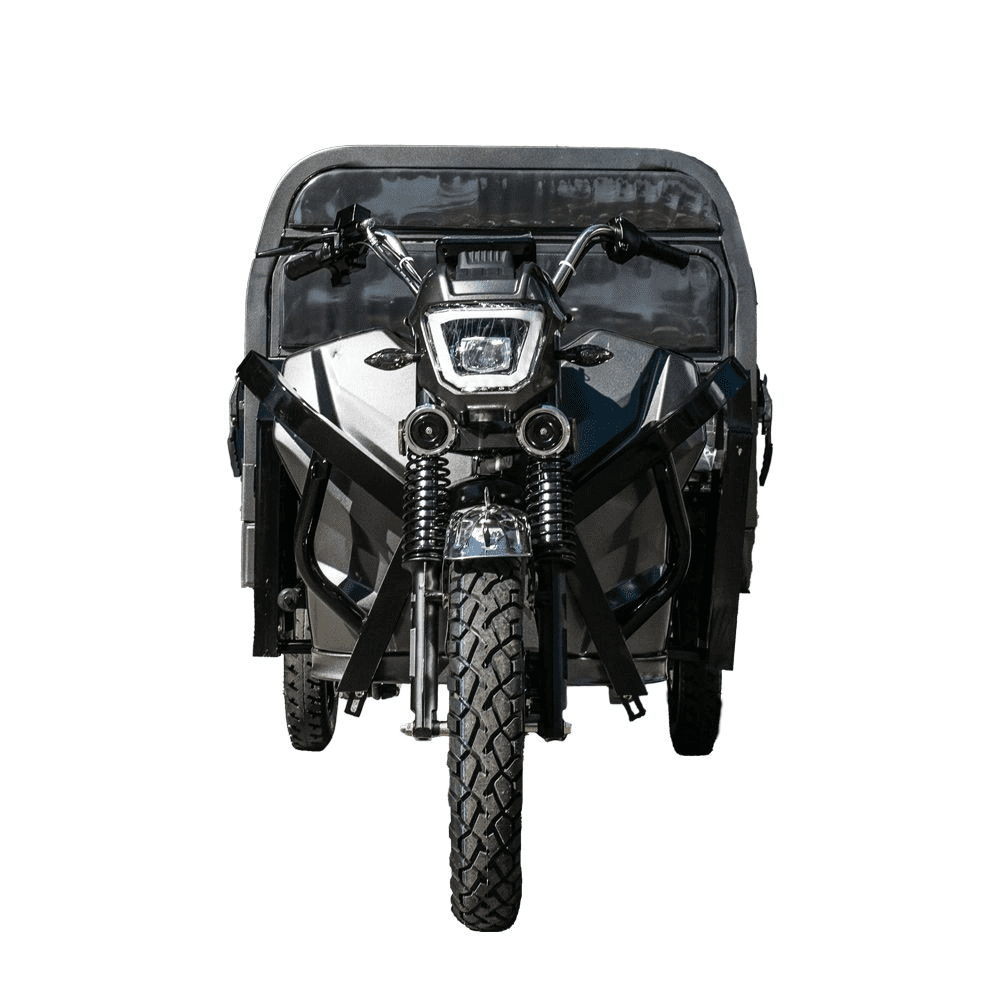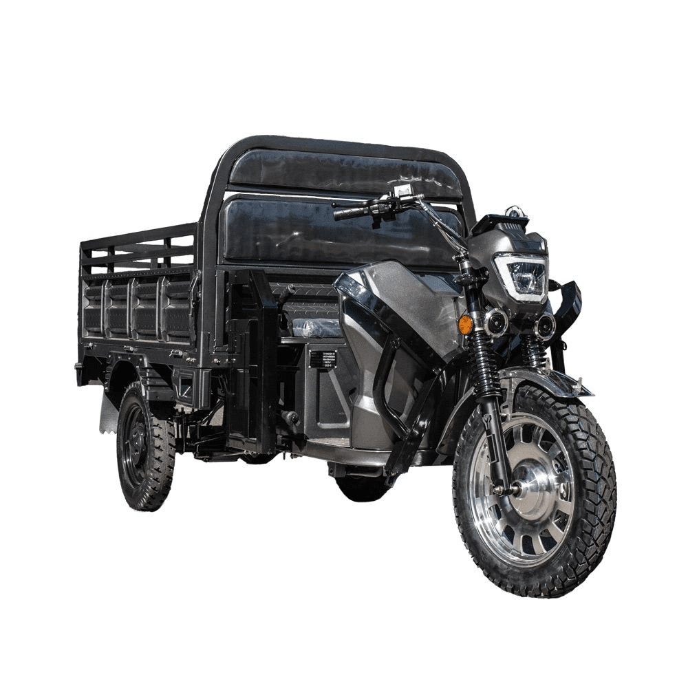 Електротрицикл вантажний GW-8A 72V45Ah 1800W — це сучасний та надійний транспорт для перевезення різних вантажів. Потужний електродвигун 1800 Вт у поєднанні з акумулятором 72В 45А·год забезпечує запас ходу до 60 км і розвиває швидкість до 45 км/год. Місткий кузов розміром 1,6×1,1 м дозволяє перевозити великі та важкі предмети вагою до 300 кг. Триколісна конструкція з великими колесами (переднє 16″, задні 12″) та ресорною підвіскою гарантує стійкість та комфорт у русі. Надійні передні дискові та задні барабанні гальма, а також світлодіодна фара роблять експлуатацію безпечною за будь-яких умов. При керуванні електротранспортом до 3000 Вт не потрібно мати водійське посвідчення та реєстраційних документів на нього (згідно з п. 1.10 та 2.13 ПДР). Рекомендуємо при собі мати документи з технічними характеристиками транспортного засобу.