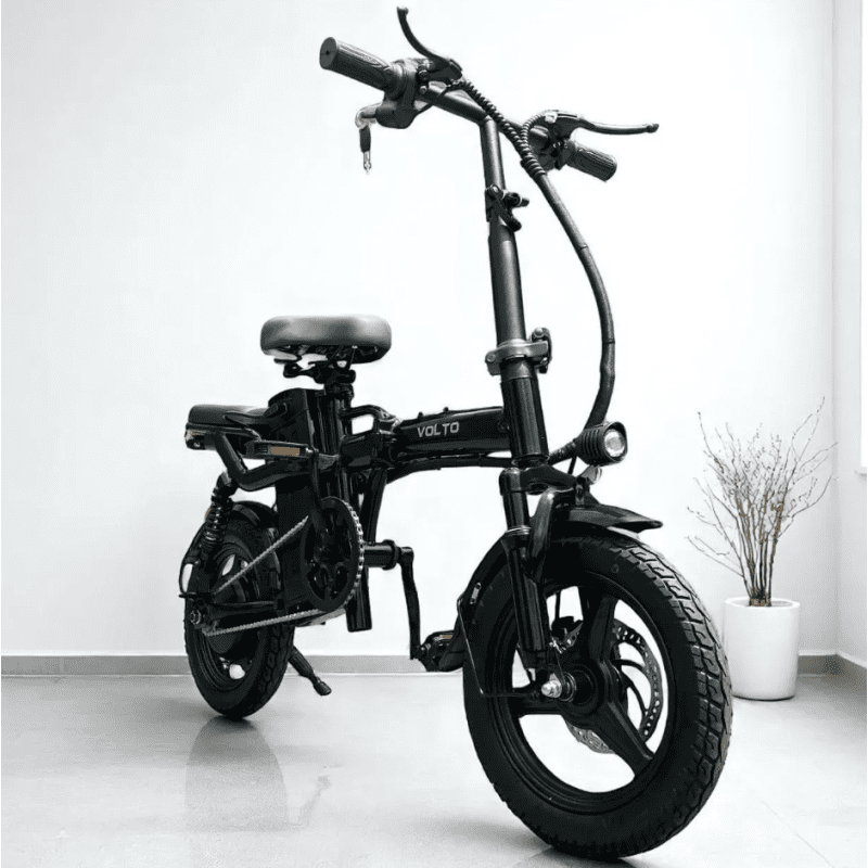 Електровелосипед VOLTO Compact 800W 48V 19Ah — потужний компактний електровелосипед, створений для зручних та швидких поїздок містом. Завдяки невеликим колесам 14″ велосипед має високу маневреність та легко пересувається у міському трафіку.