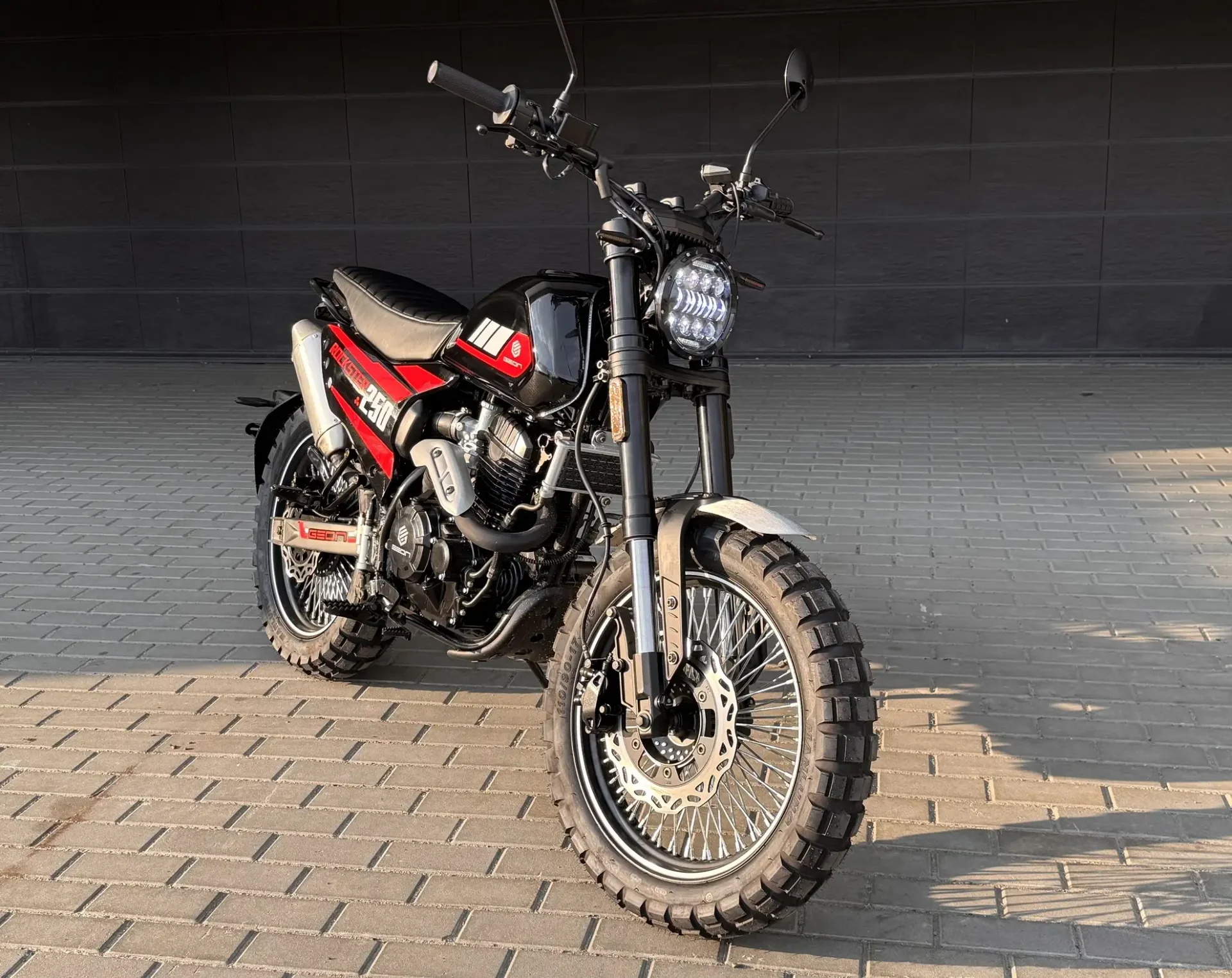 GEON Rockster 250 On-Road — це справжній універсал серед мотоциклів, створений для тих, хто не визнає обмежень і хоче отримувати максимум від кожної поїздки. Оснащений потужним 4-клапанним двигуном Loncin на 24,5 к.с. з балансувальним валом, він впевнено почувається як на асфальті, так і поза ним. Повітряно-масляне охолодження гарантує стабільну роботу навіть під навантаженням, а шести-ступенева КПП дозволяє повноцінно реалізувати потенціал мотоцикла у будь-яких умовах.