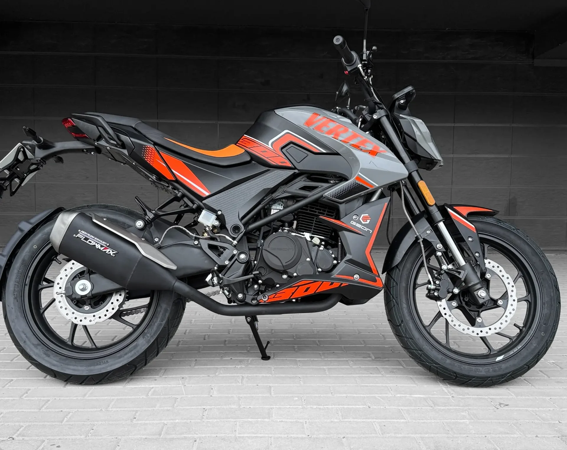 Телескопічна перевернута вилка й гідравлічний моноамортизатор забезпечують стабільність і плавність руху, а сталевий маятник додає надійності конструкції. Комфортне анатомічне сидіння розраховане на двох пасажирів, що робить Vertex чудовим вибором для подорожей.
