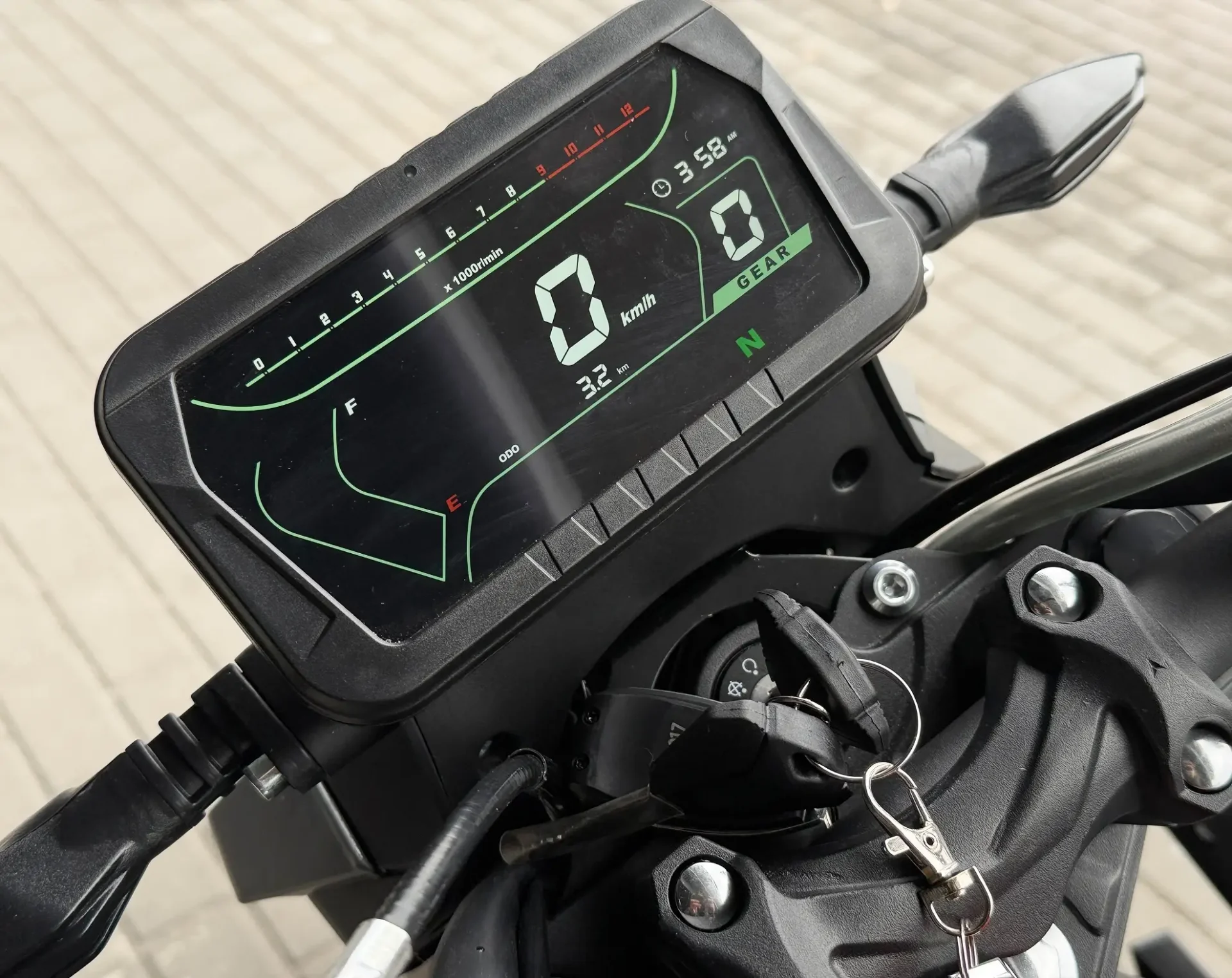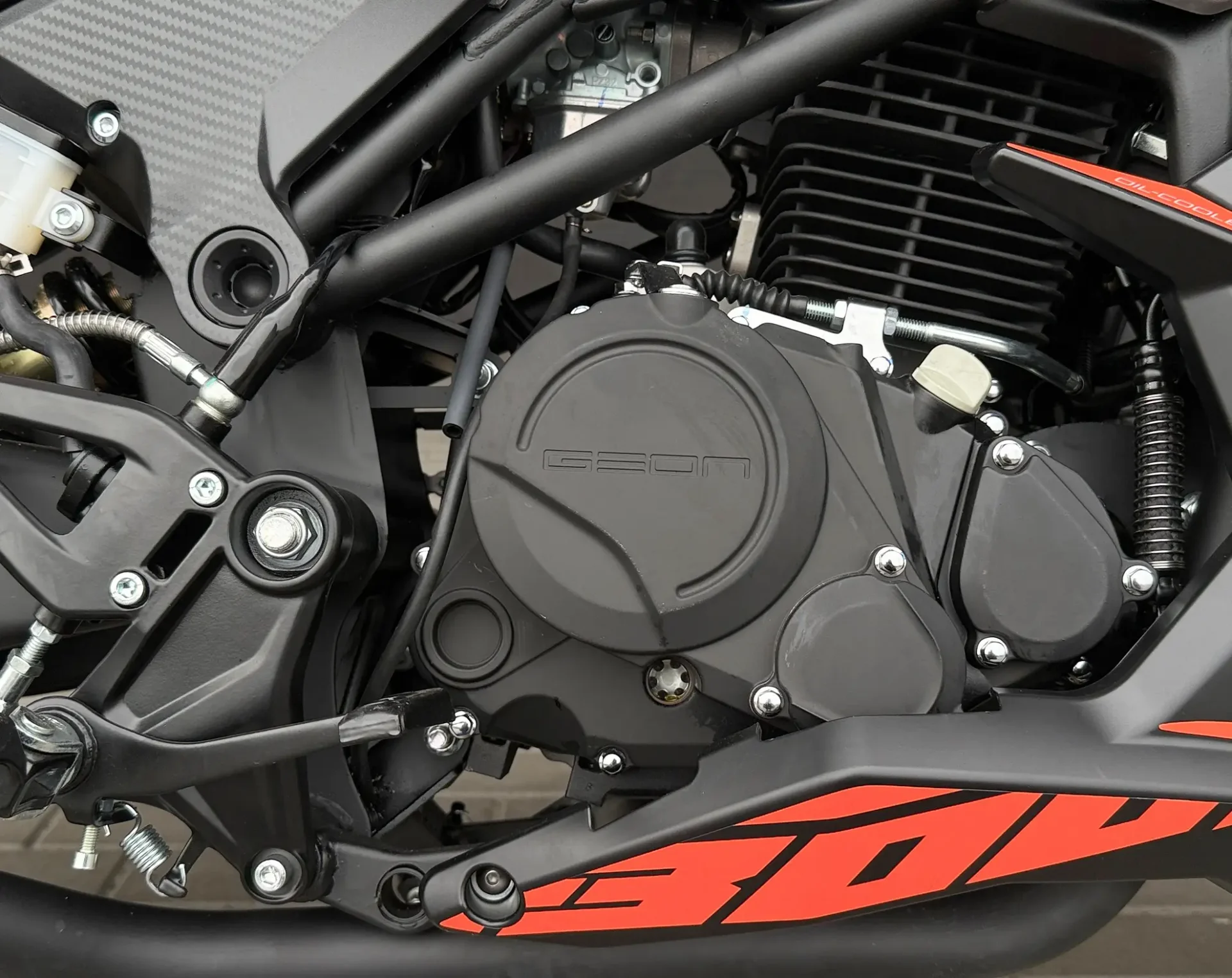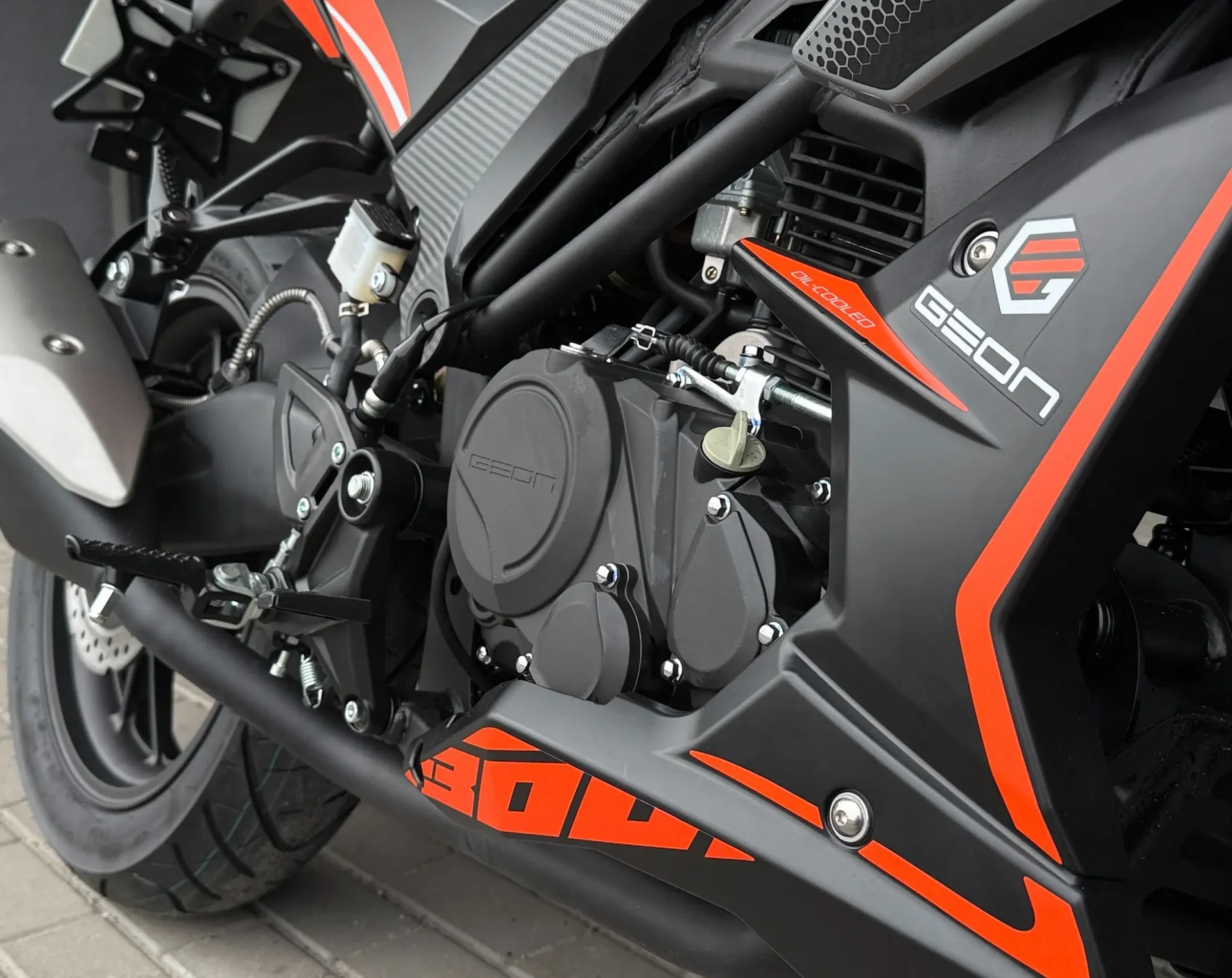 Мотоцикл оснащений великою цифровою панеллю приладів, гідравлічними дисковими гальмами (276/220 мм) і яскравим LED освітленням, що підкреслює його сучасний характер. GEON VERTEX 300 — це поєднання динаміки, технологій і зручності, яке відкриває нові можливості для щоденних поїздок і далеких подорожей.